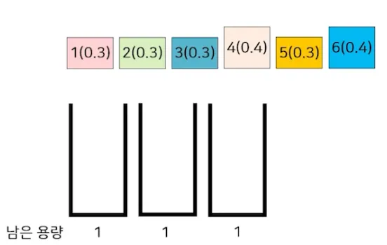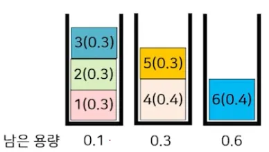 선택한 물체O(n))를 넣을 수 있는 최초의 통에 넣는 (O(n)) 방식