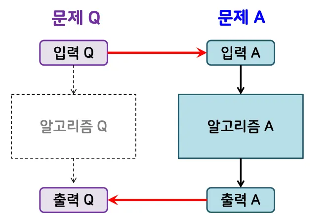 여기에 문제 A를 해결하는 알고리즘을 적용하여 문제 Q를 해결 가능