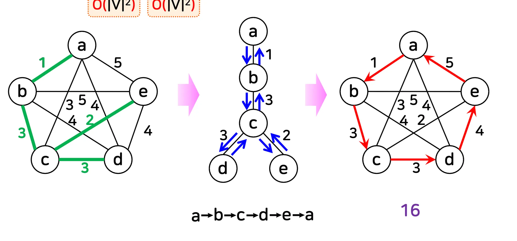 최소 신장 트리(O(|V|^2)와 깊이 우선 탐색(O(|V|^2)을 이용하는 방식