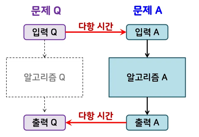 문제 Q의 입력과 출력을 문제 A의 입력과 출력 형태로 다항 시간에 바꿀 수 있고