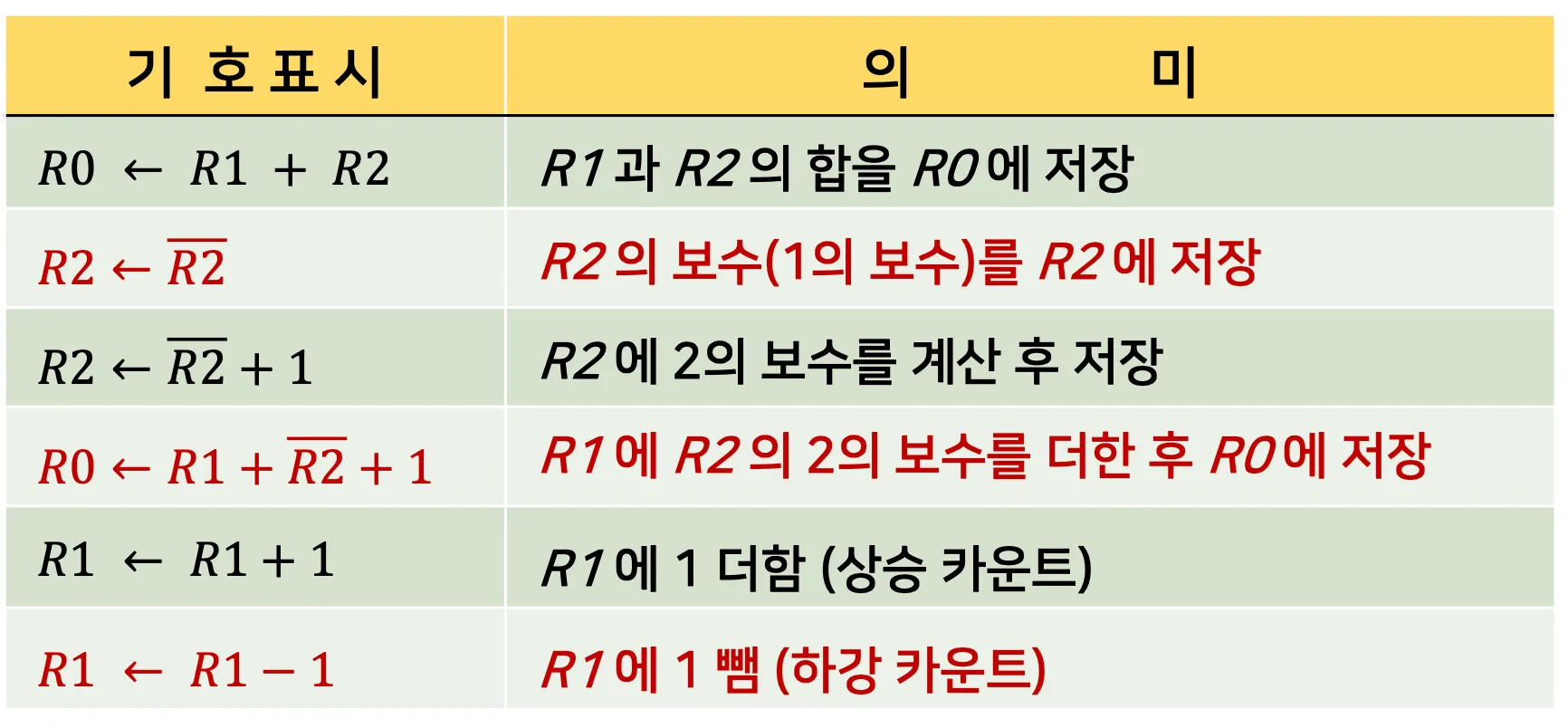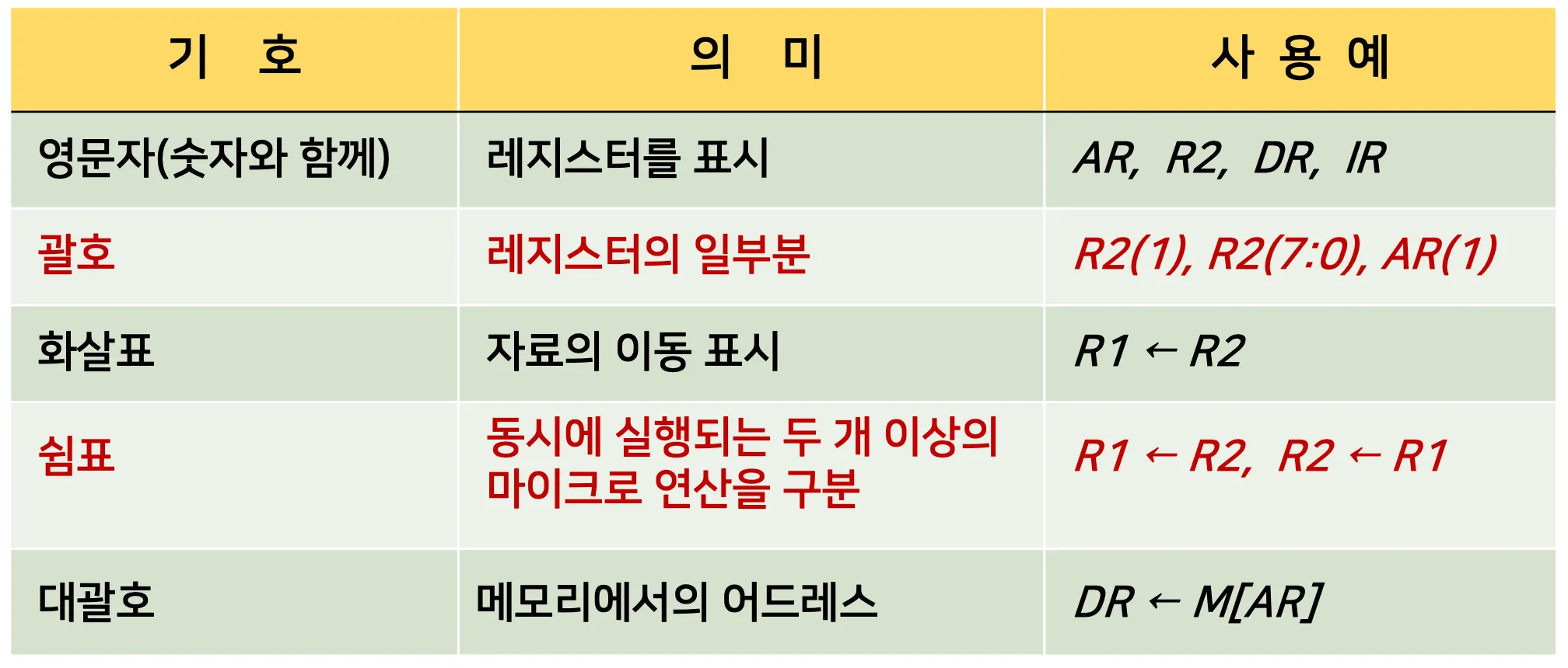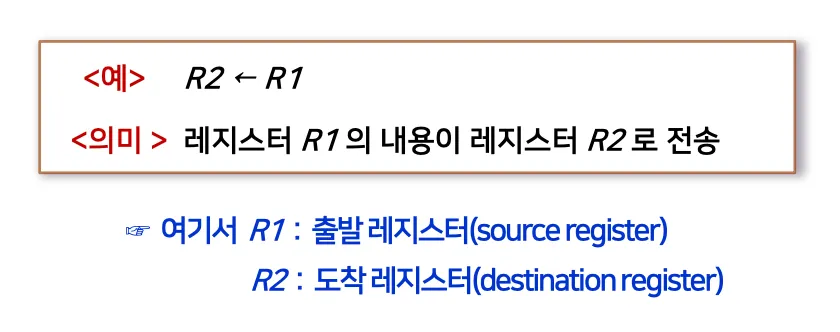레지스터 사이의 데이터 전송은 연산자 ‘←’ 로표시
