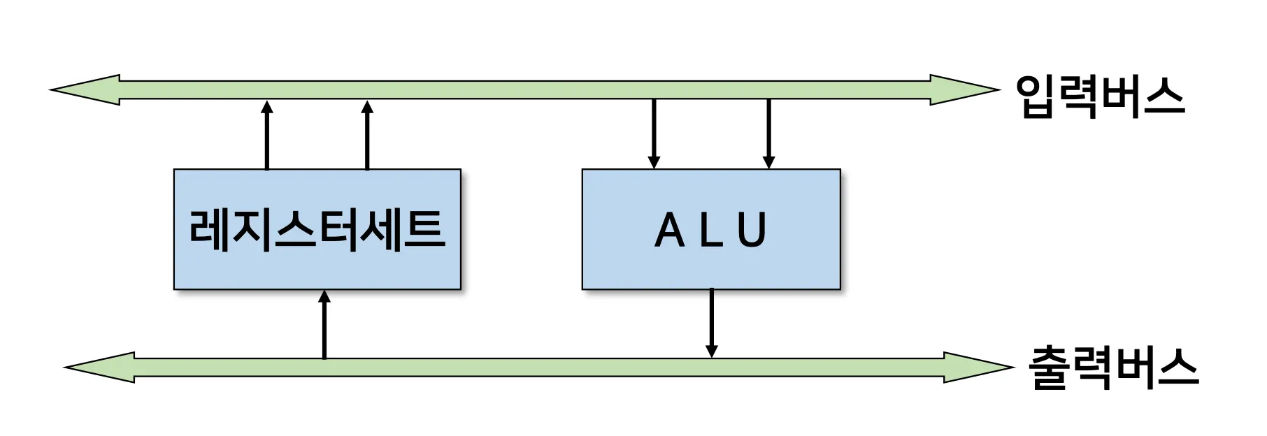 산술논리연산장치(ALU)는 독립적으로 데이터를 처리하지 못하며, 반드시 레지스터들과 조합하여 데이터를 처리