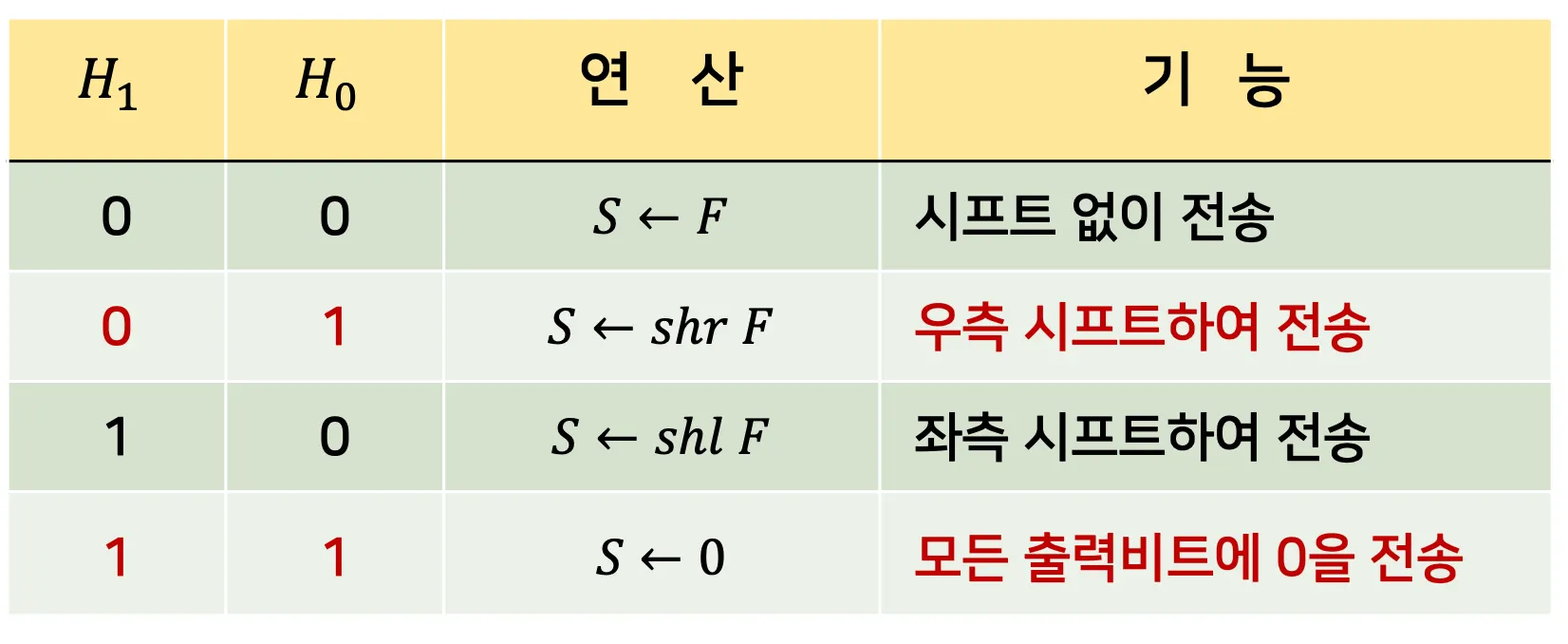 선택신호 H는 시프터에서 시프트 연산을 수행
