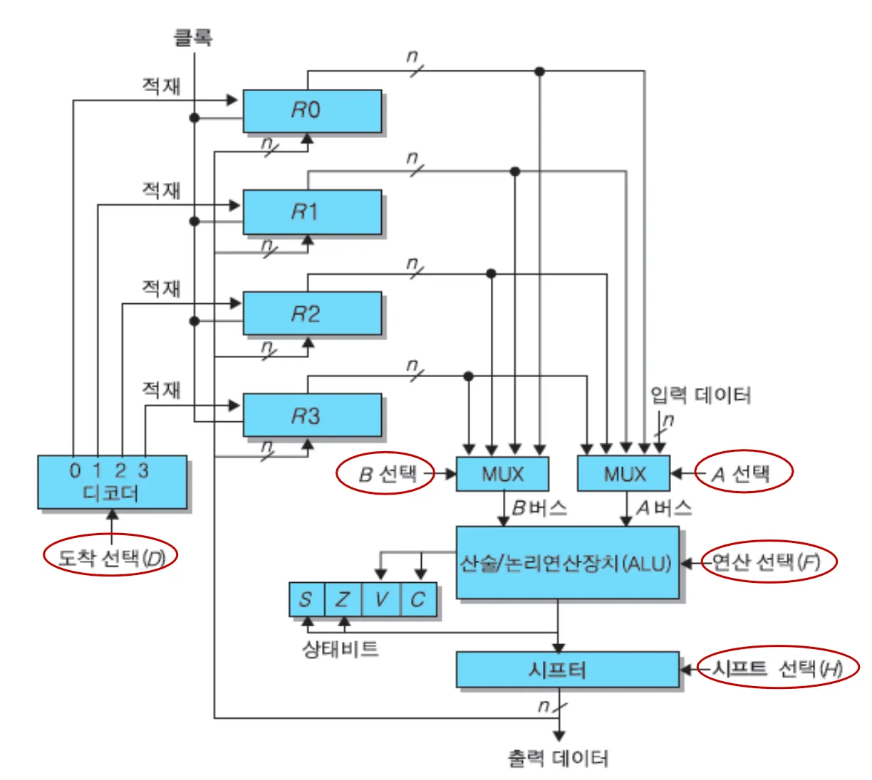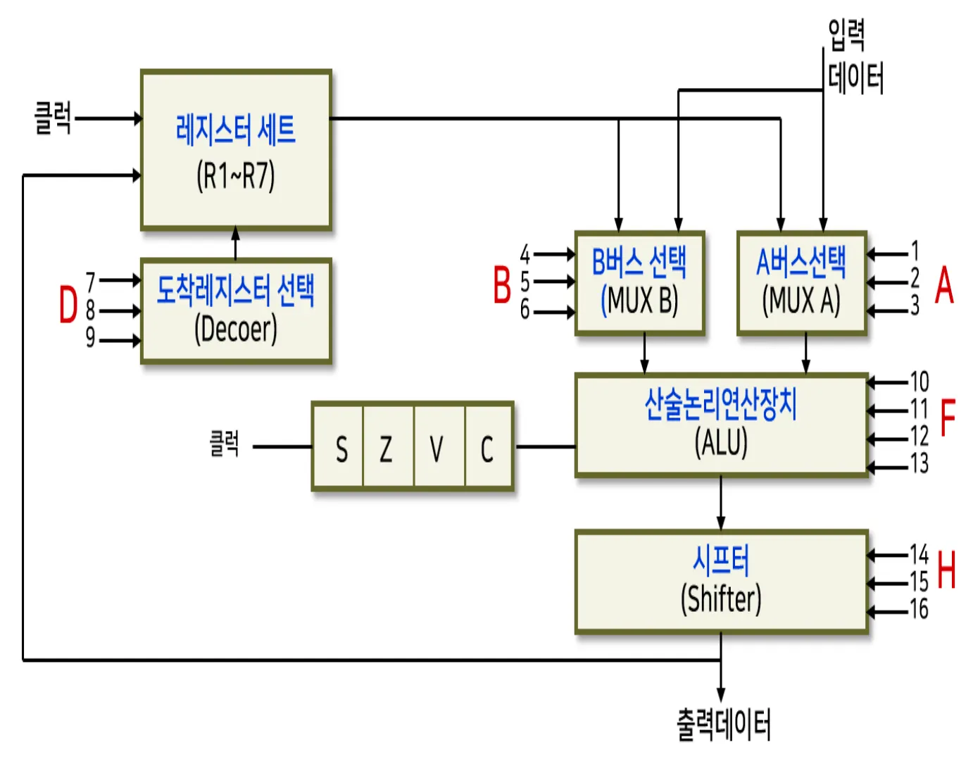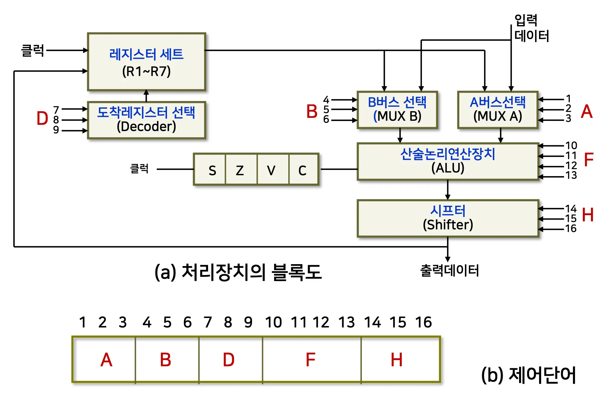 처리장치의 버스, ALU, 시프터, 도착 레지스터 등을 제어