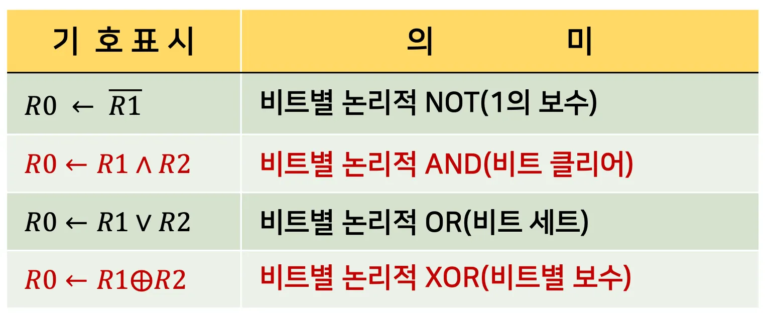 레지스터에 있는 각 비트를 독립된 2진 변수로 간주하여 비트별 연산을 실행