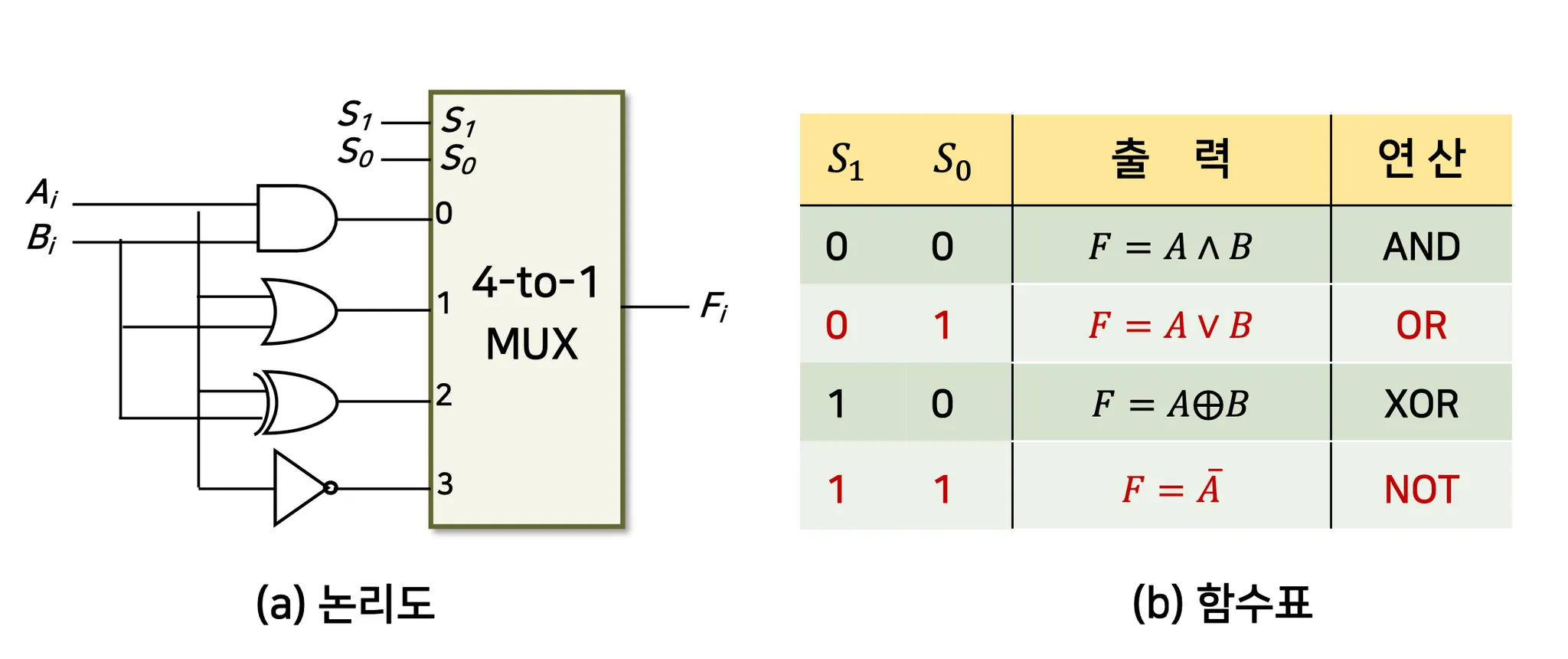 선택신호의 비트 수는 산술논리연산장치의 연산 종류의 수와 연관됨