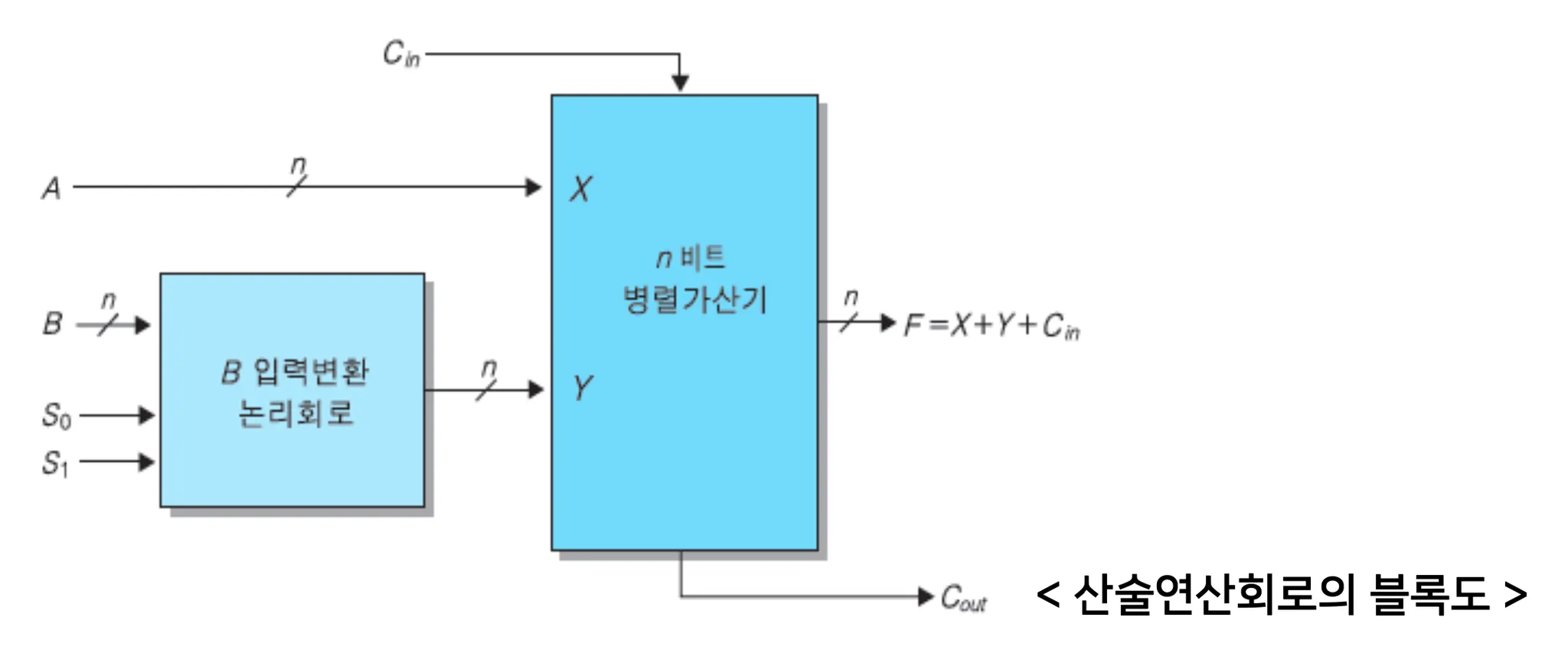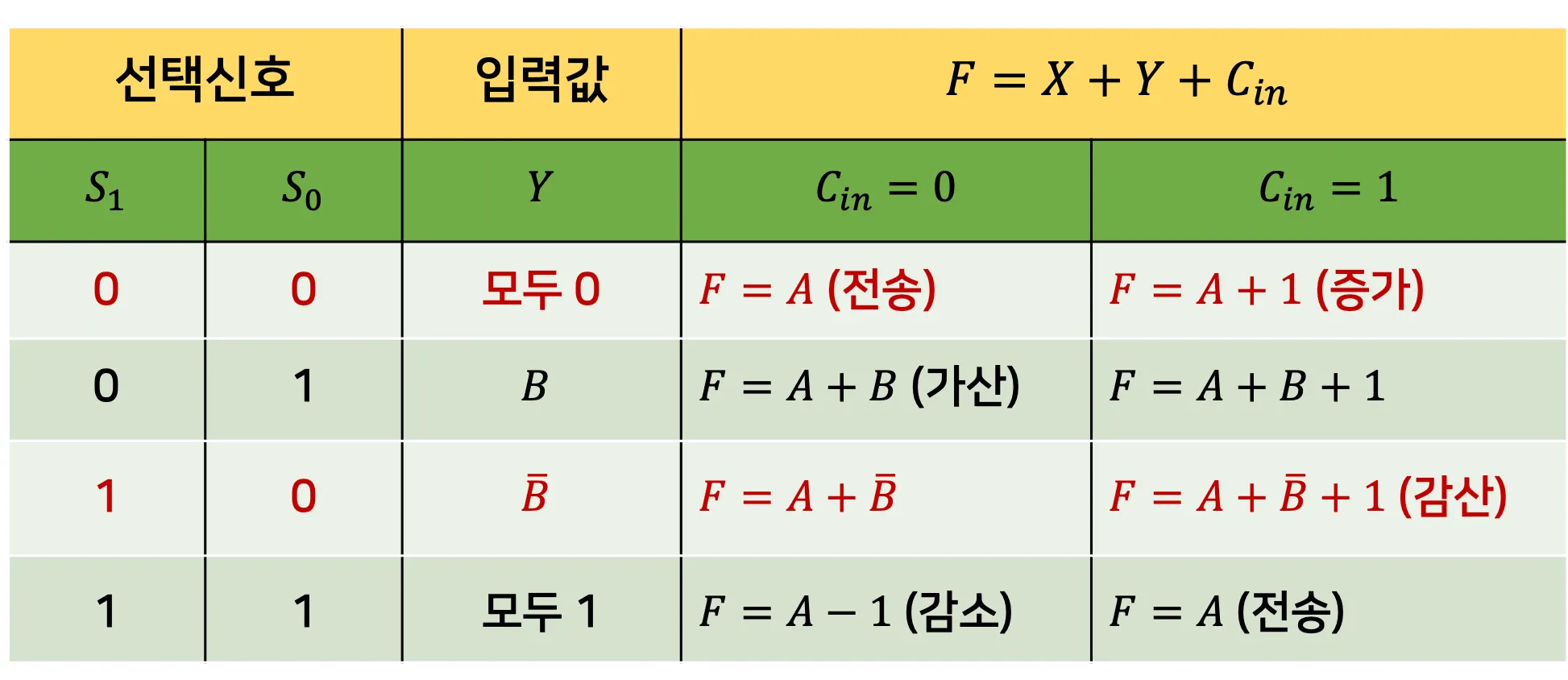 병렬가산기로 들어가는 제어입력 값을 선택하여 여러 가지 형태의 산술연산을 실행