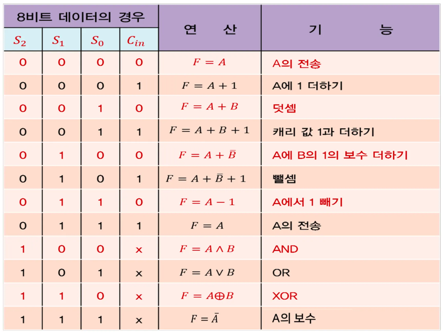산술연산회로 경우의 수 8가지, 논리연산회로 경우의 수 4가지 → 12가지 연산 수행 가능
