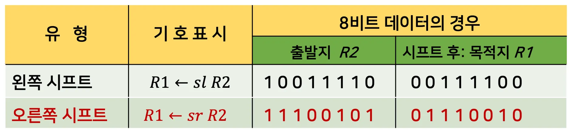 레지스터 내의 데이터를 시프트(shift) 시키는 연산