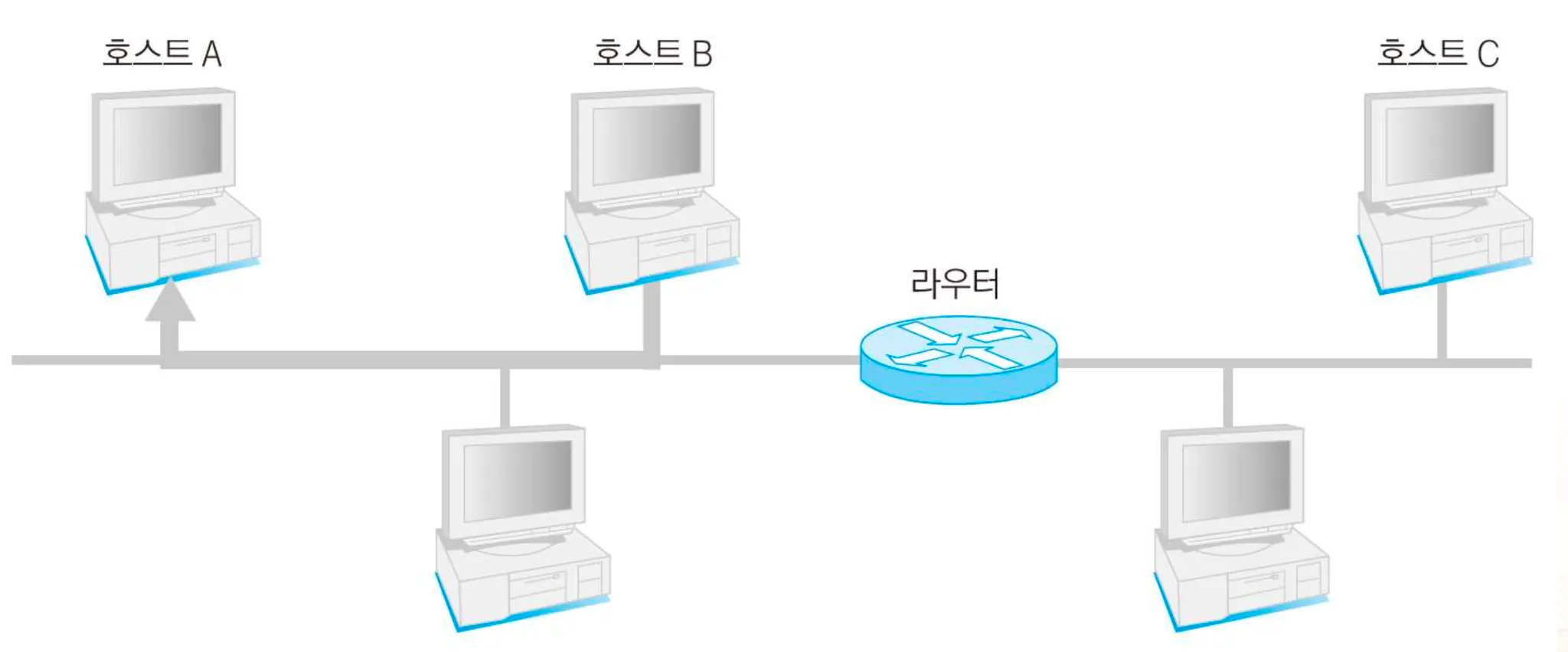모든 호스트에게 다보냄 (호스트 A → every host)