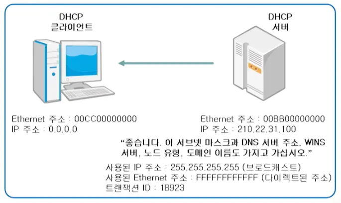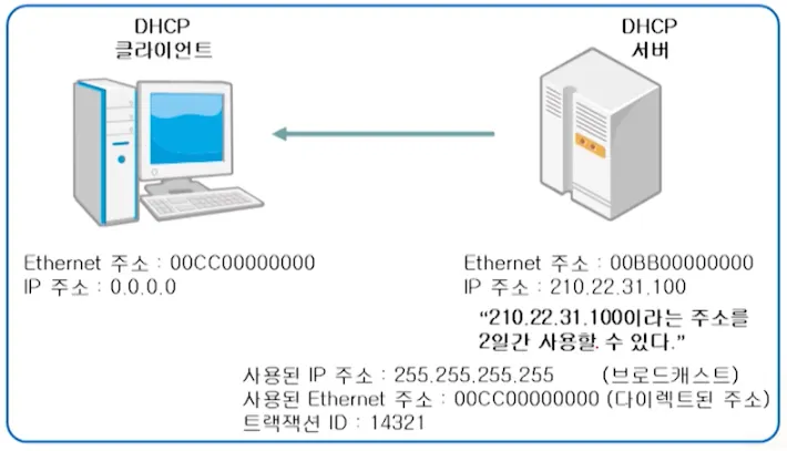 IP 주소 pool에서 사용가능한 IP 주소를 선택하여 원하는 호스트에게 일정 기간 임대해줌