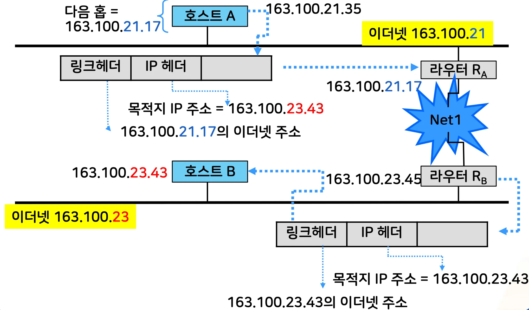 IP: 송신자, 수신자 그리고 그 사이의 경로 상에 있는 모든 라우터들이 IP 데이터그램 전달에 관여