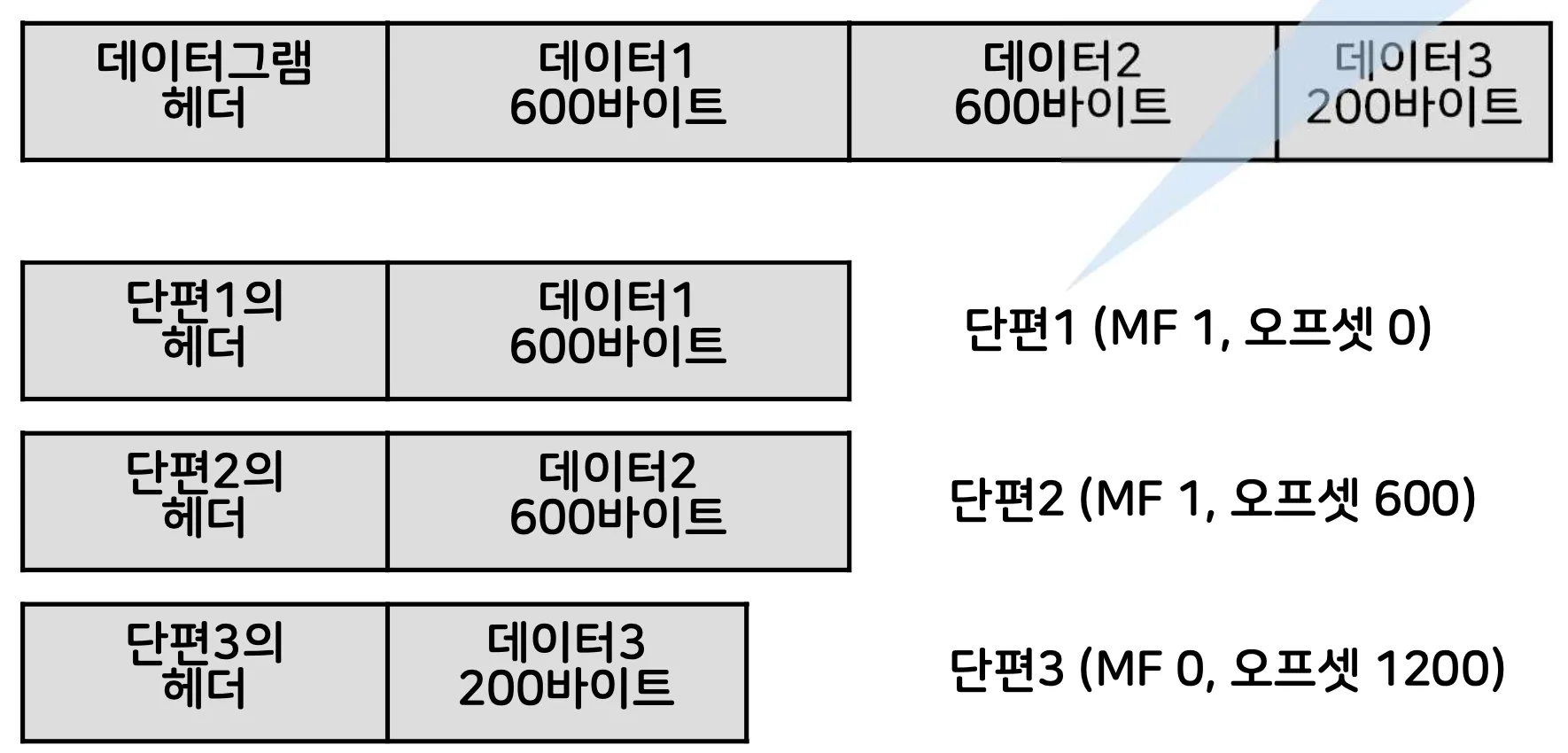 데이터그램이 단편화 되었을때 각 단편은 동일한 식별자를 가짐
