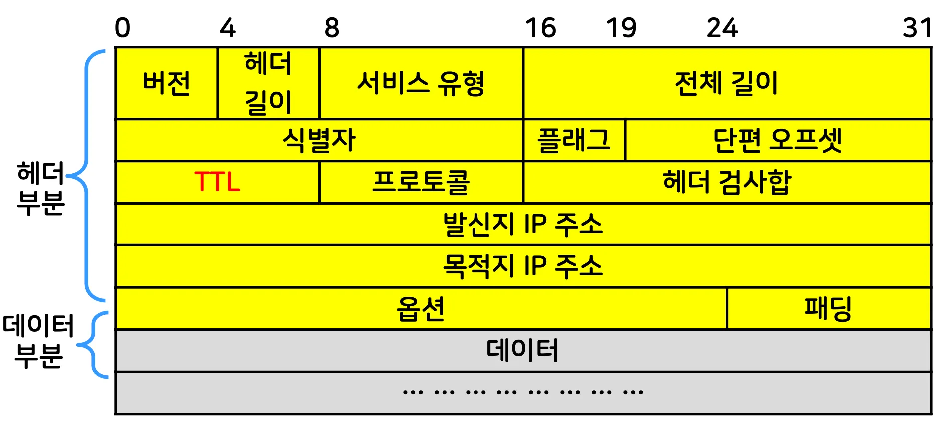 거쳐야하는 최대 라우터 수를 나타냄. 보통 두 호스트 사이의 라우터 수의 두배로 설정함