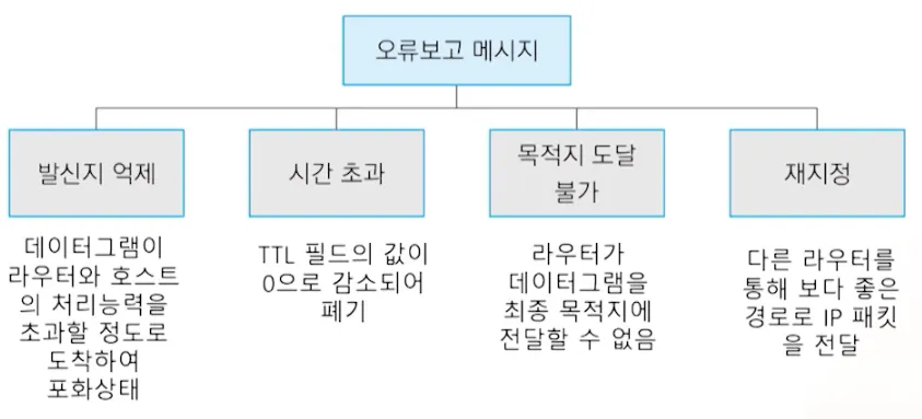 IP 데이터그램의 전송과정에서 발생하는 오류를 라우터나 발신지 호스트에게 보고하는 매커니즘 제공