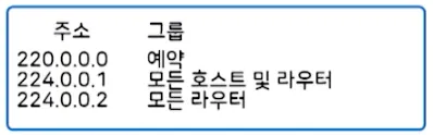 주소 범위: 224.0.0.0 ~ 239.255.255.255