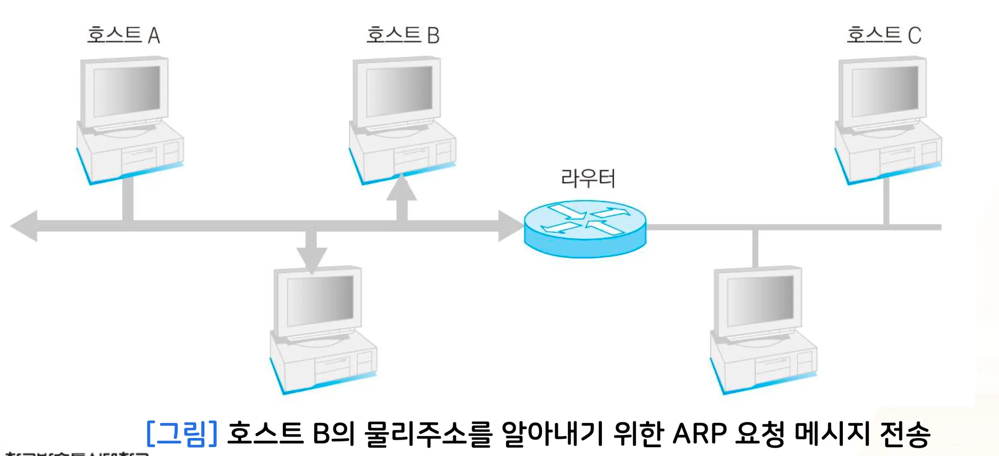 상대방 호스트의 IP 주소는 알고 물리주소를 모를때 물리주소를 알기위해 사용
