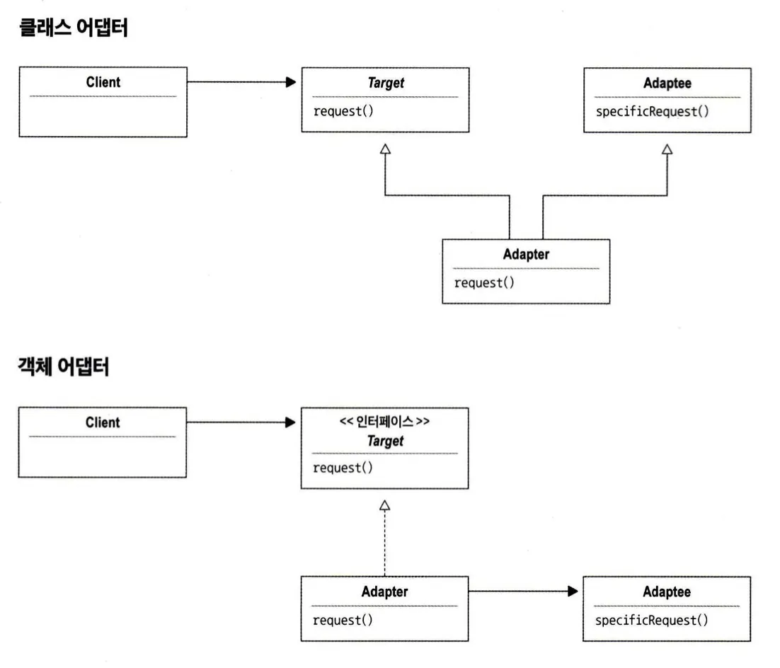 Adapter 클래스는 Adaptee 클래스를 Target 클래스로 변형하는데, 이를 위해서 Adaptee 클래스를 상속 받아야 함