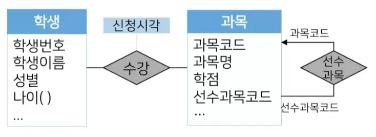 한 개체 집합이 자기 자신과 관계 집합을 형성하는 관계