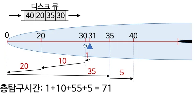 탐구시간이 가장 짧은 접근 요구를 먼저 처리하는 방법