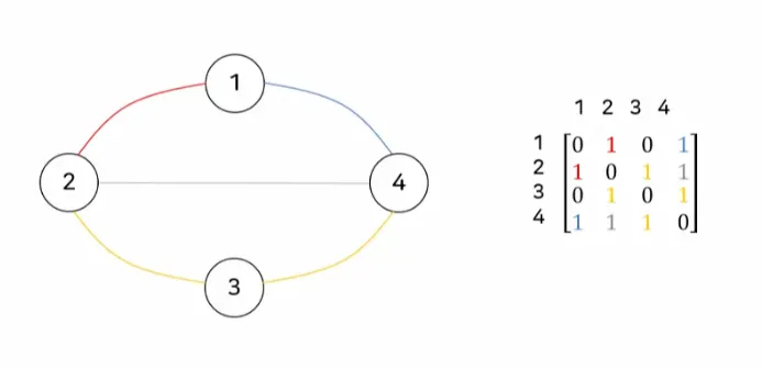 즉,두 정점 Vi 와 Vj 를 연결하는 간선이 존재하는 경우를 말함