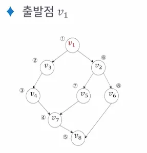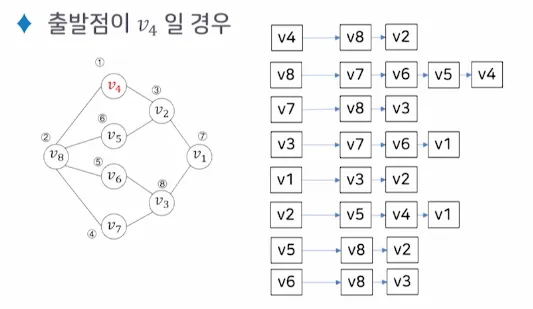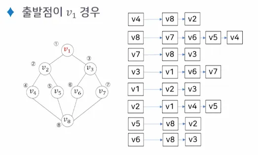출발점 v 를 방문하는 것으로 시작