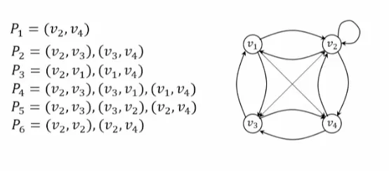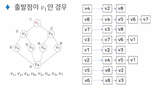 그래프의 정점 V2에서 출발하여 정점 V4에서 끝나는 경로