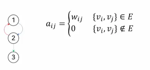 간선 { vi, vj} ( 방향 그래프라면 (vi, vj))의 가중치가 Wij일때, 인접행렬 요소 aij