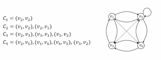 임의의 두 정점을 연결하는 어떤 간선의 끝 정점(해당 간선의 머리)이 이어진 간선의 시작 정점(해당 간선의 꼬리)이 되는 간선의 열