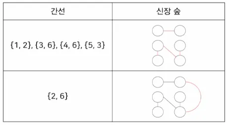 간선이 하나도 없는 그래프의 모든 정점들로 구성된 숲에서 시작함