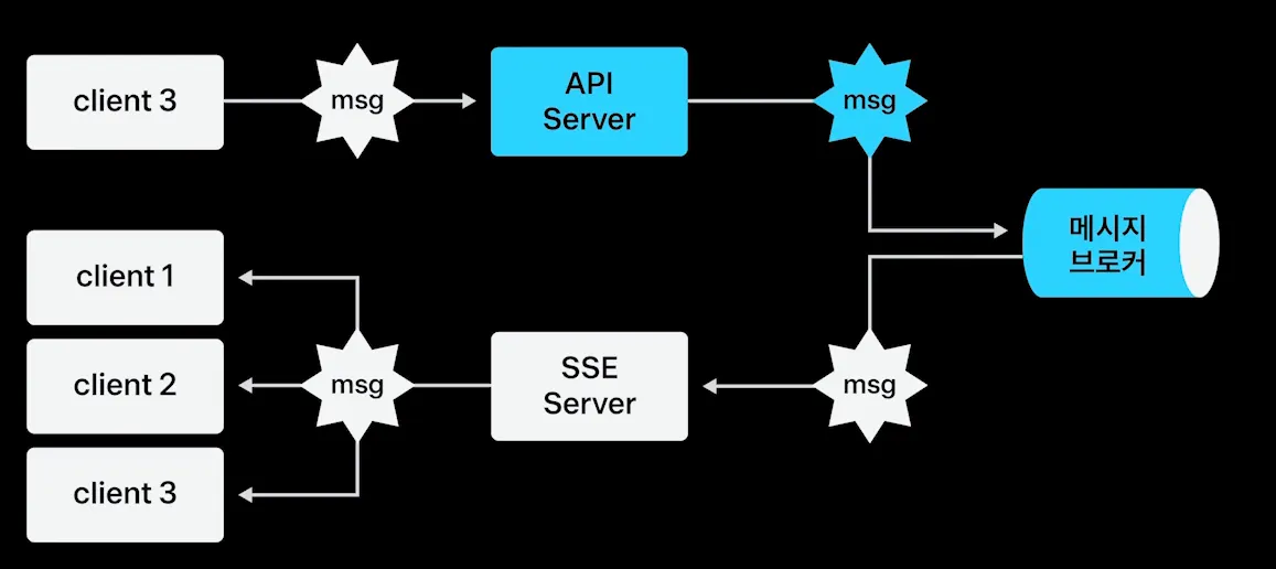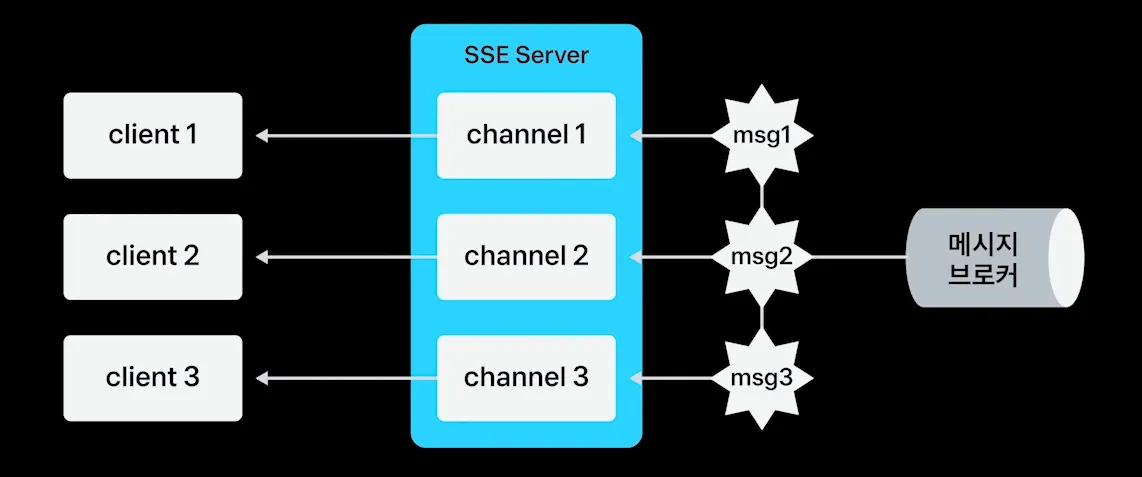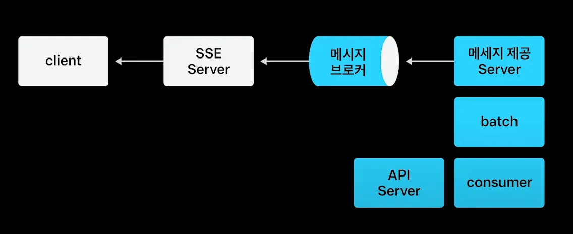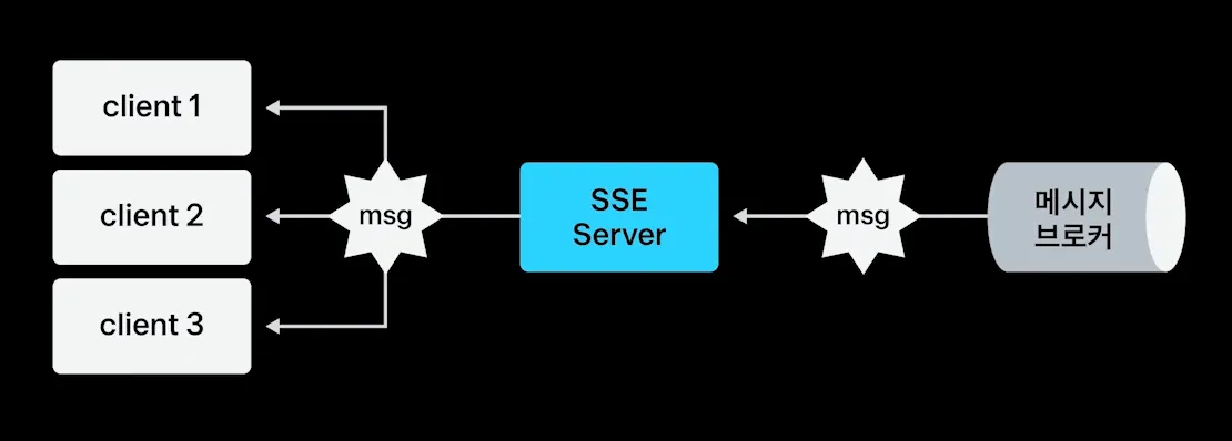 SSE 서버는 메세지 브로커를 통해 메세지를 전달 받음
