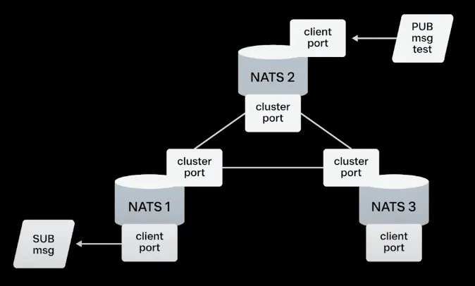 cluster port를 통해 NATS 1번으로 메세지 전송