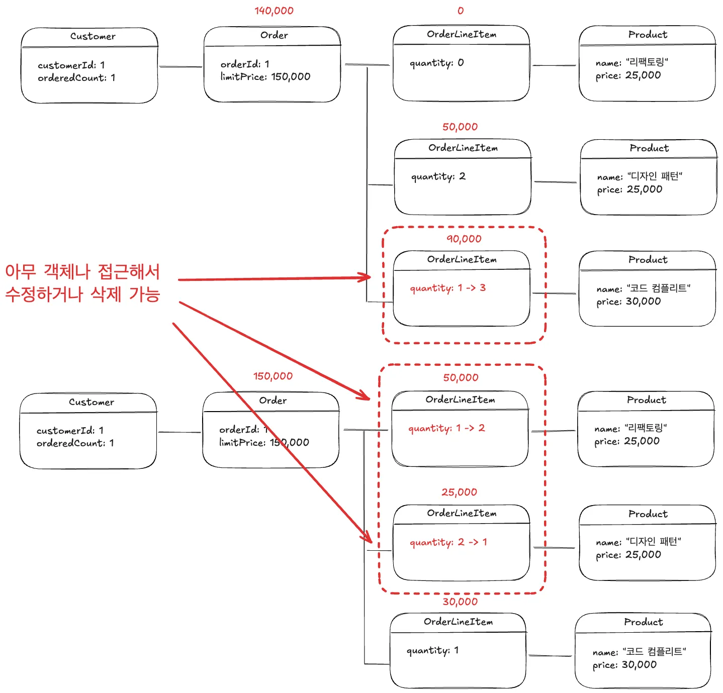 예) Order 객체를 통해서만  OrderLineItem 접근 허용