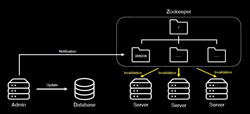 Zookeeper가 저장하고 있는 값을 변화시켜 각 서버들에게 데이터 변경 이벤트 전달