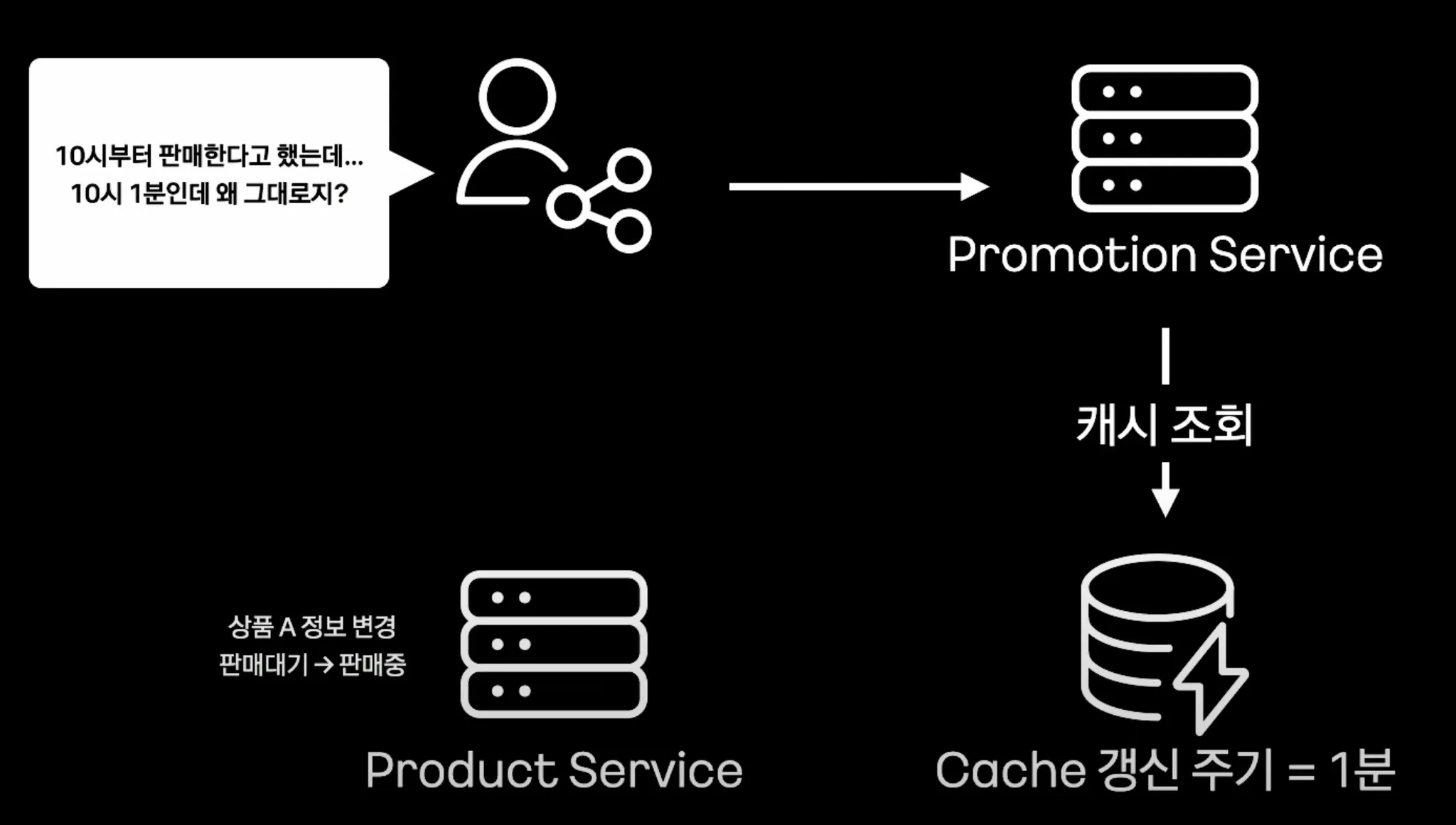 예) 중요 프로모션 제품의 판매 상태 정보 업데이트 딜레이 → 캐시 갱신 주기 감소 필요