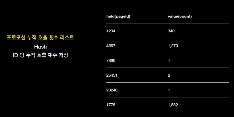 Hash를 활용하여 프로모션 누적 호출 횟수 리스트 저장