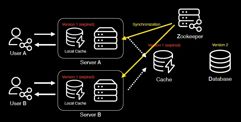 하이브리드 캐시는 여러 서버에서 각각의 로컬 캐시를 사용 → 데이터 변경 시 일관성 문제가 발생