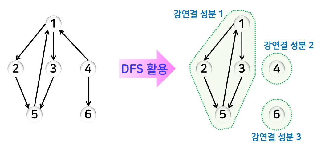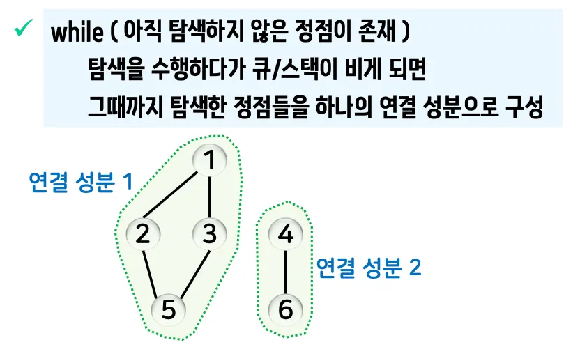 DFS 또는 BFS를 수행하며, 연결된 모든 정점을 하나의 성분으로 그룹화