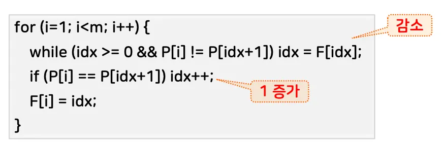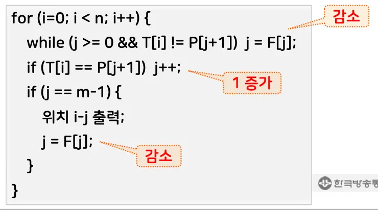 for (j = 0; j < m; j++) { // 패턴의 길이만큼 O(m)