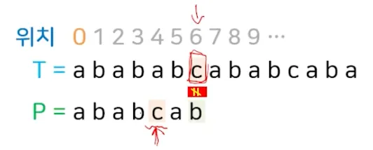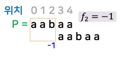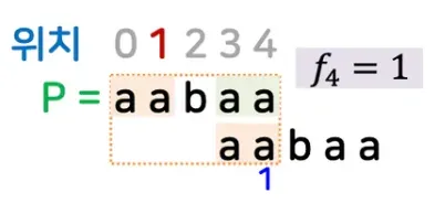 마지막 위치가 빠진 j = 5에서 일치 발생