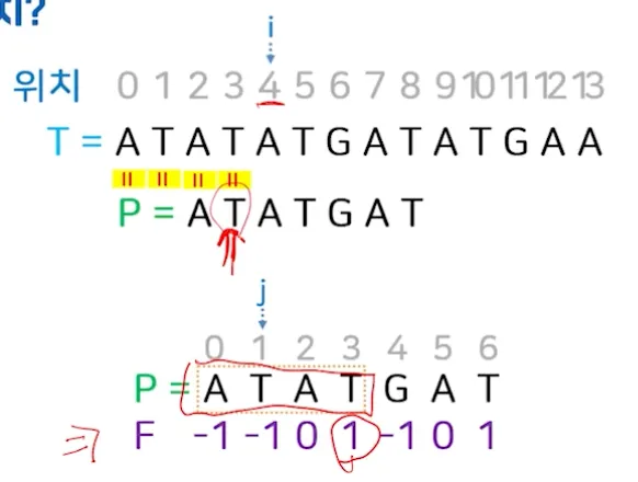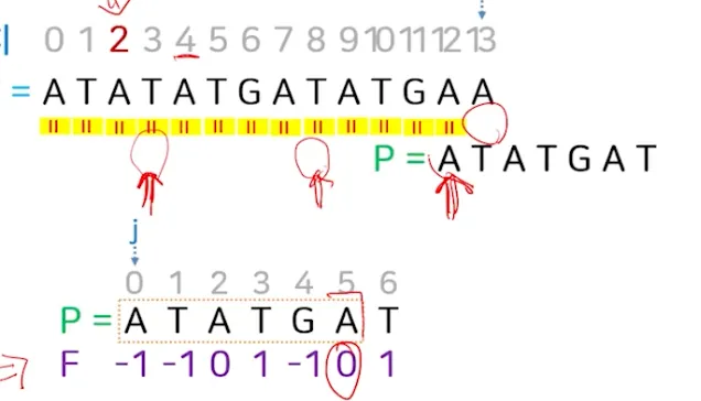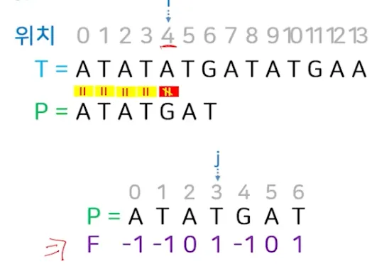 텍스트 T=ATATATGATATGAA에서 패턴 P=ATATGAT가 매치되는 모든 위치?