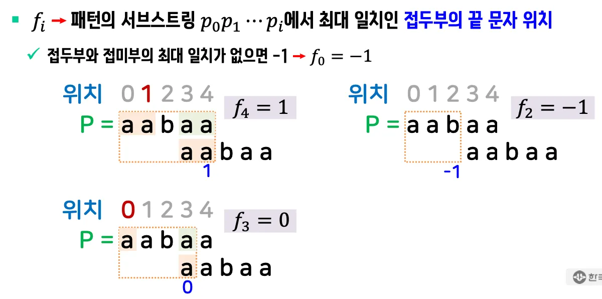 이때의 접두부/접미부의 최대일치정보 f = 1