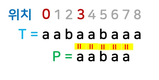 if (flag) 위치 i 출력; // 일치하는 위치 출력