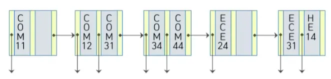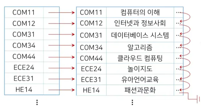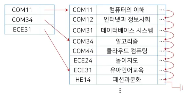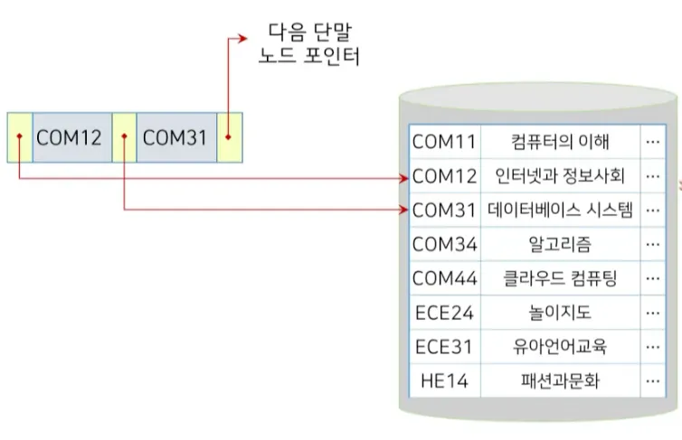 연속된 레코드의 접근을 빠르게 하기 위해 각각의 레코드 끝에 다음 레코드 위치를 나타내는 포인터를 가지고 있음