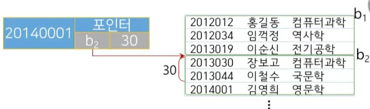 탐색키에 대한 실제 레코드를 지칭하는 포인터를 제공