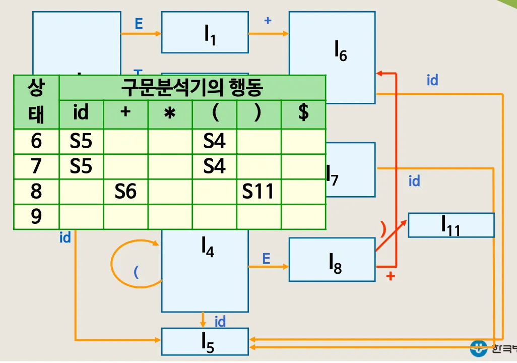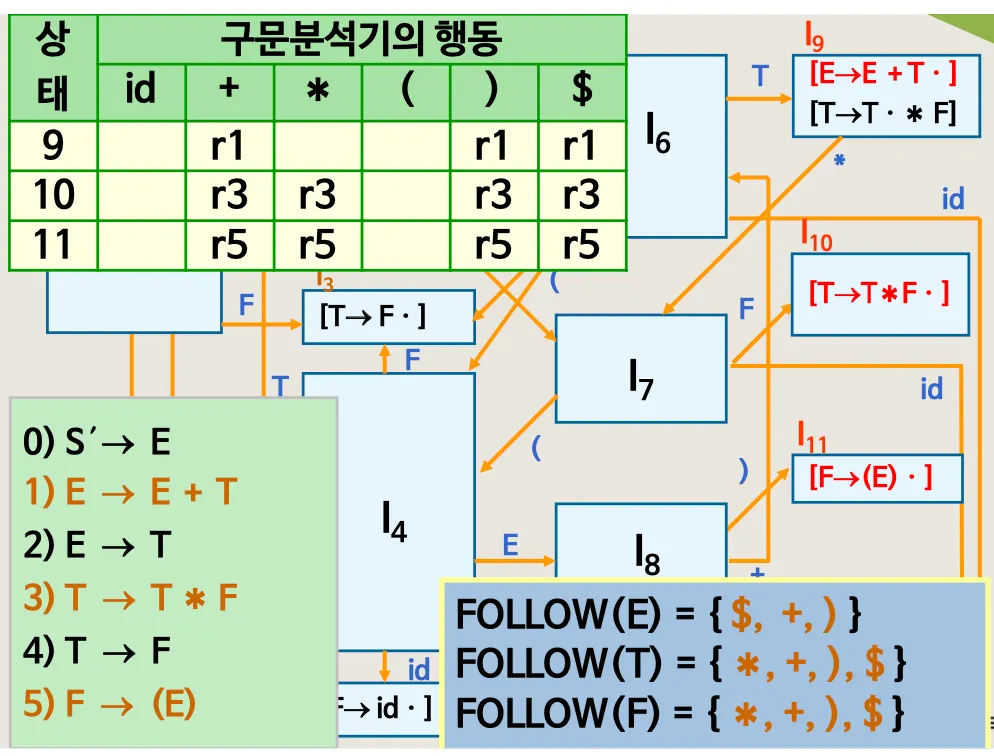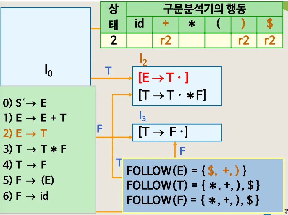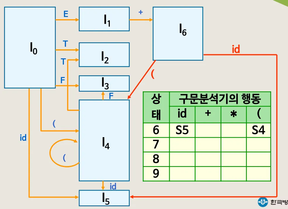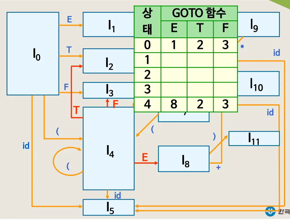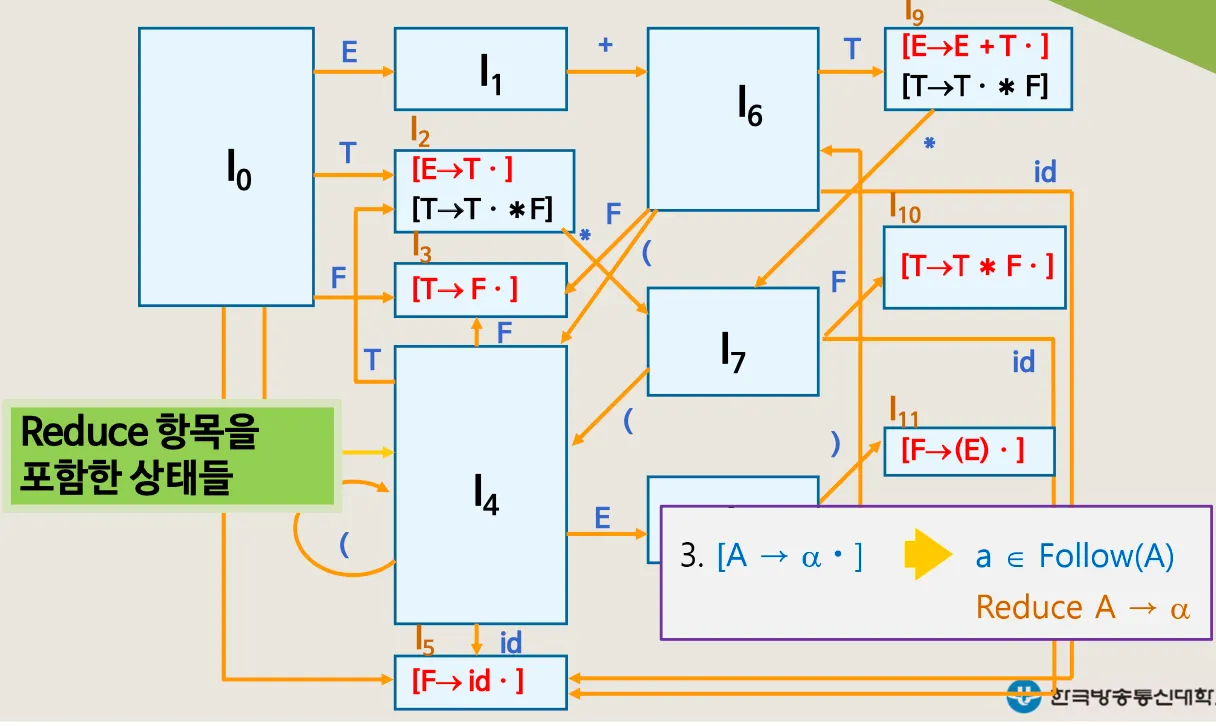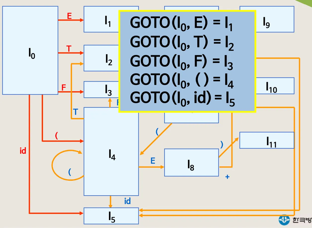 [A→ α·Bβ] 에서, 논터미널 B를 생성규칙의 왼쪽으로 갖는 LR(0) 항목들의 집합