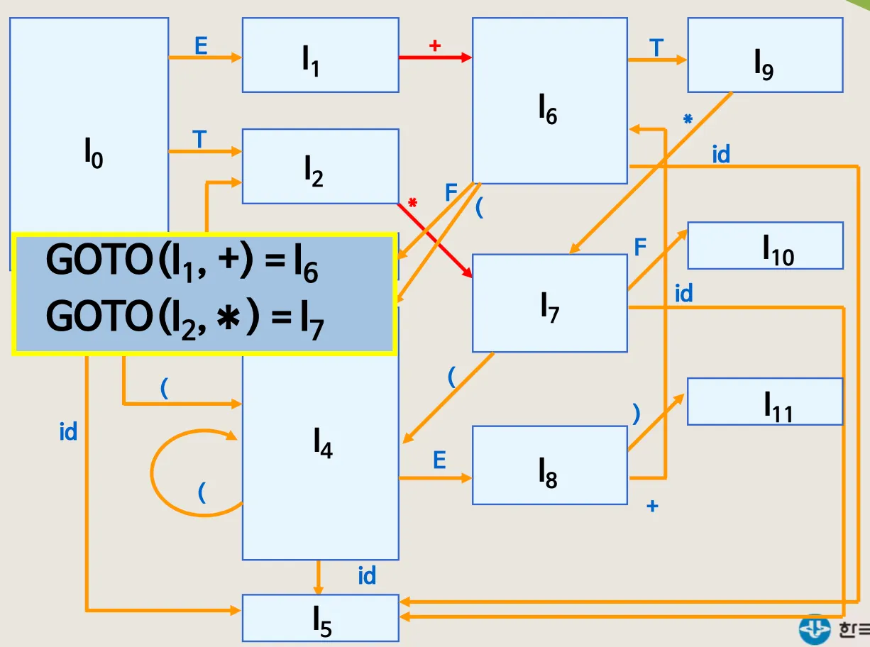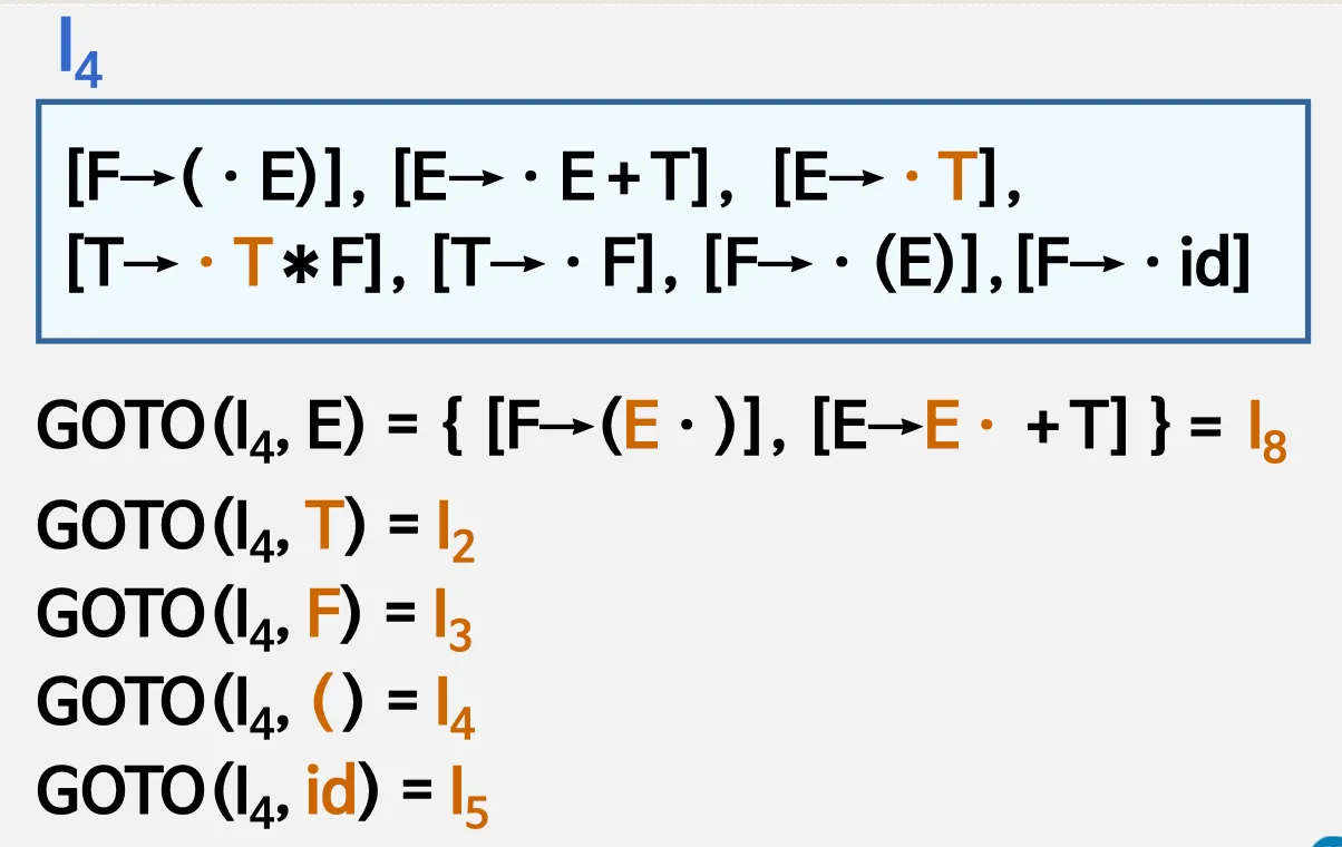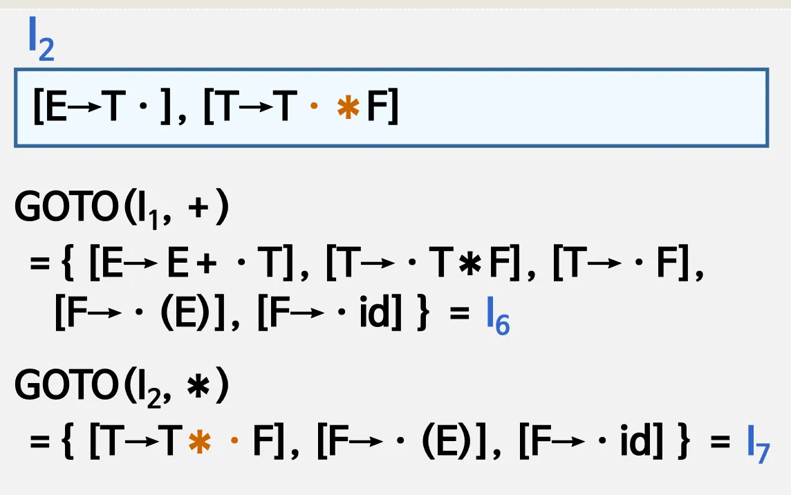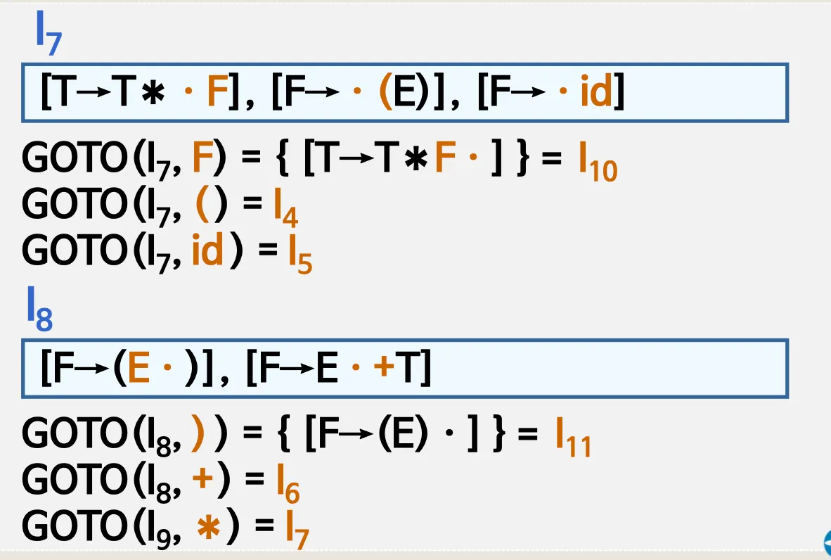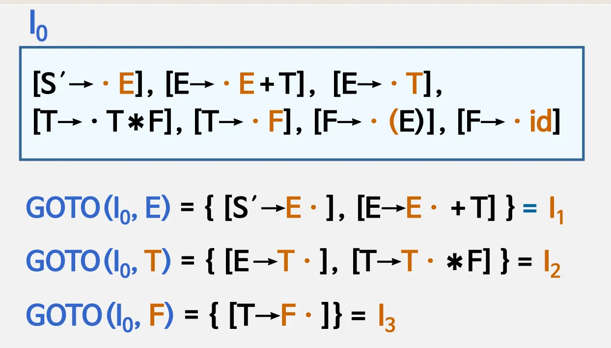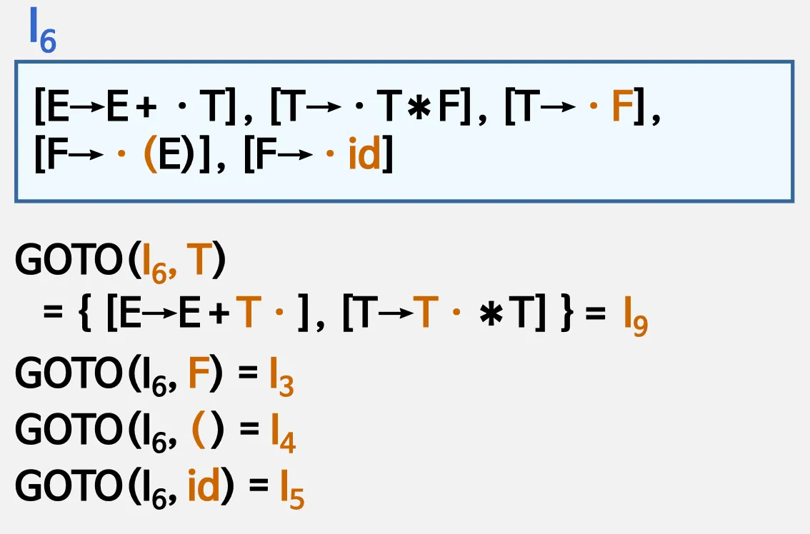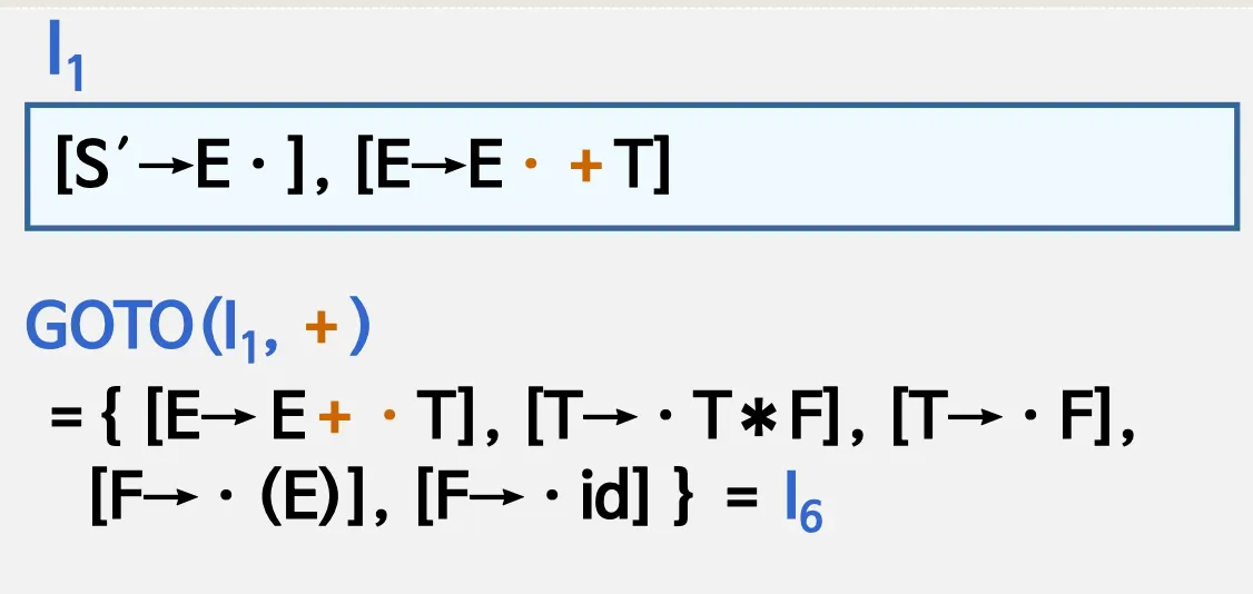 GOTO(I, X) = closure({[A → αX․β]| [A → α․Xβ∈I})