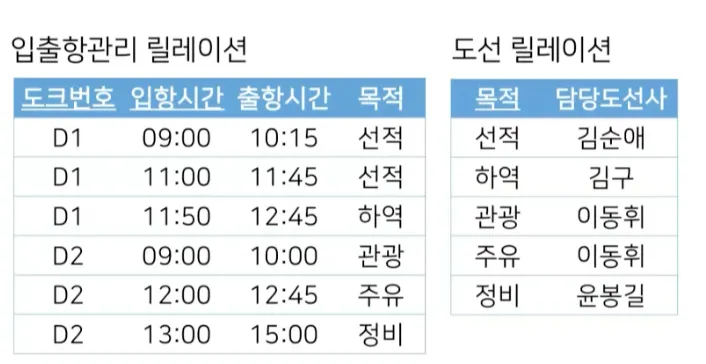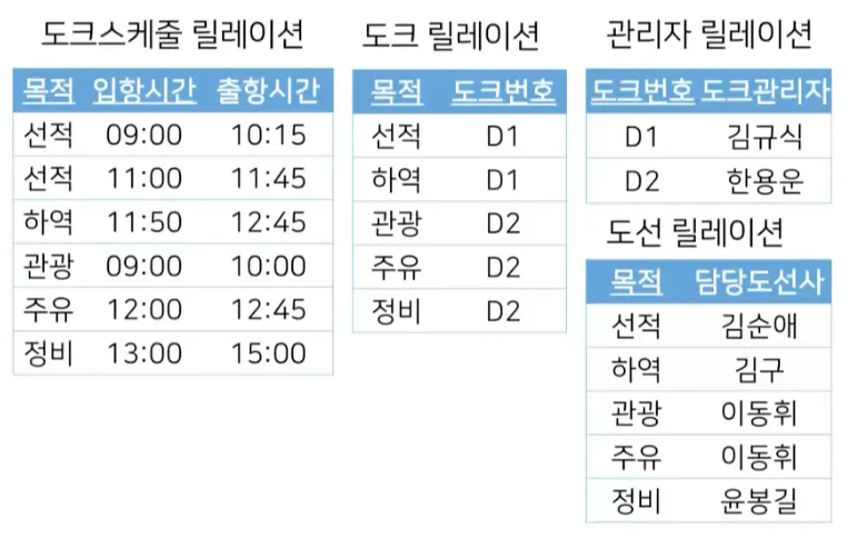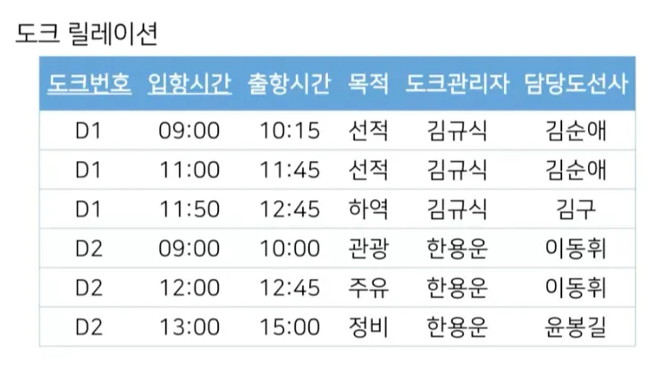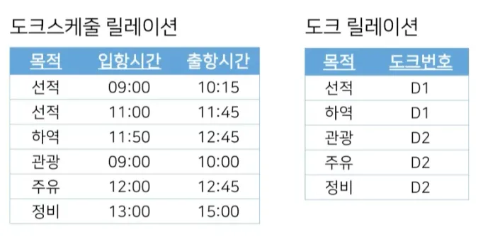 목적이 결정자이므로 기본키인 도크번호를 대체함