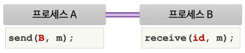 두 프로세스가 직접 서로를 지정하여 메세지 전달