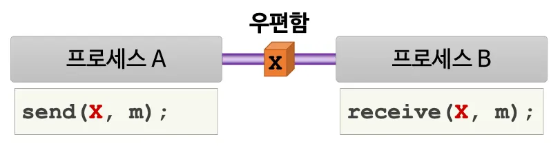 프로세스 사이에 둔 우편함을 통해 메세지 전달